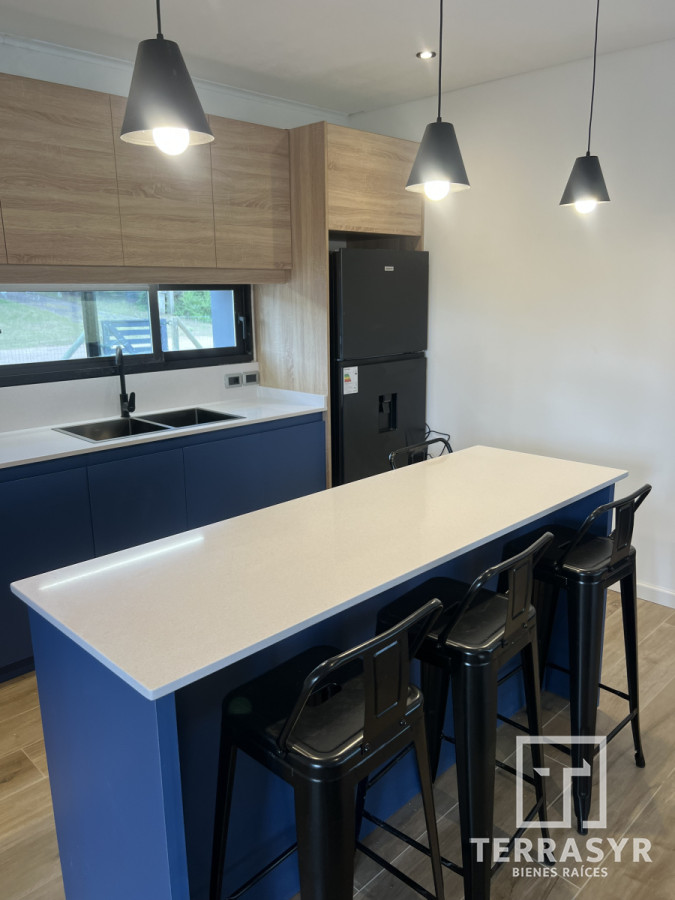 La cocina integrada se fusiona armoniosamente con el living comedor, creando un ambiente abierto y acogedor, ideal para reuniones familiares o cenas con amigos.