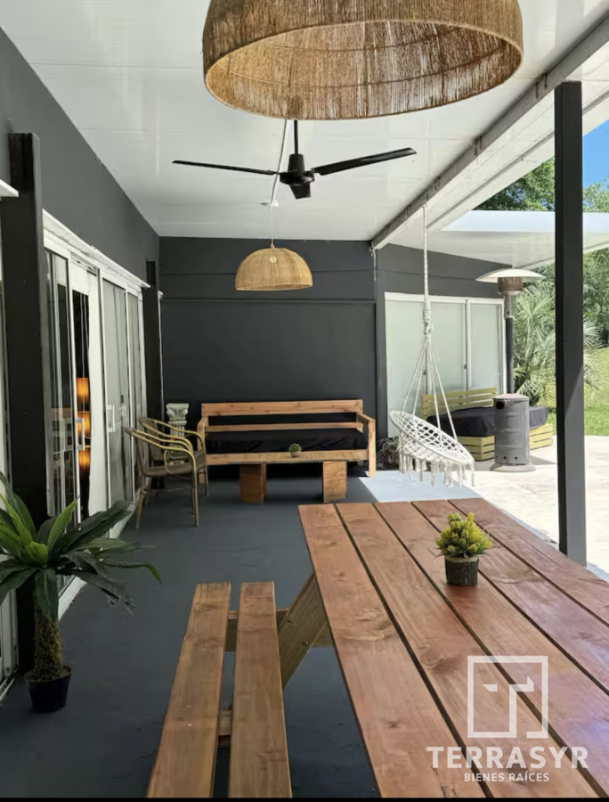Con un diseño moderno la casa cuenta con un amplio living-comedor con estufa a leña , cocina integrada , parrillero techado , piscina y cochera.